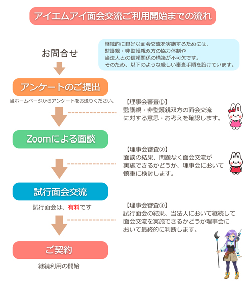 ○ 継続して面会交流実施が可能であるとアイエムアイ理事会が判断した後に、ご契約となります。